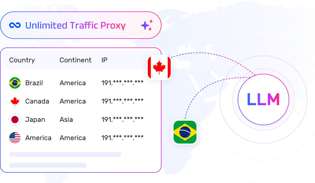 LLM training requires a large amount of data, and the traditional data acquisition efficiency cannot meet the requirements. No need to pay for expensive traffic, truly unlimited traffic, avoid interruption of data supply due to traffic restrictions.