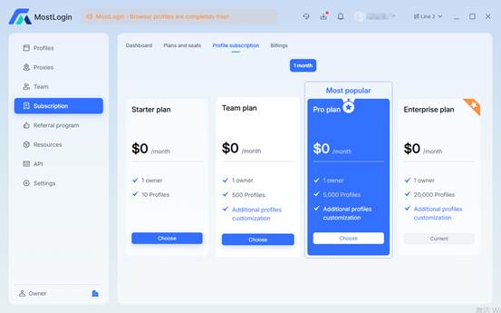 MostLogin的最大吸引力在于其免费政策。指纹浏览器环境完全免费,用户无需支付任何费用即可享受核心功能,包括多开网页、账号防关联、API接口、RPA自动化和群控系统。只有云手机功能收取费用,且价格低于行业标准。这让MostLogin在2025年的指纹浏览器市场迅速崛起,成为个人用户和企业团队的首选。相比其他付费工具,它提供高效、安全且零成本的体验,帮助用户在竞争激烈的环境中占据优势。